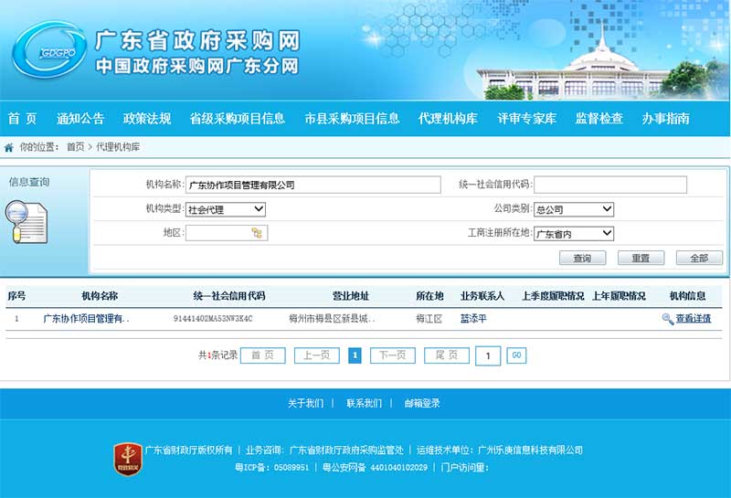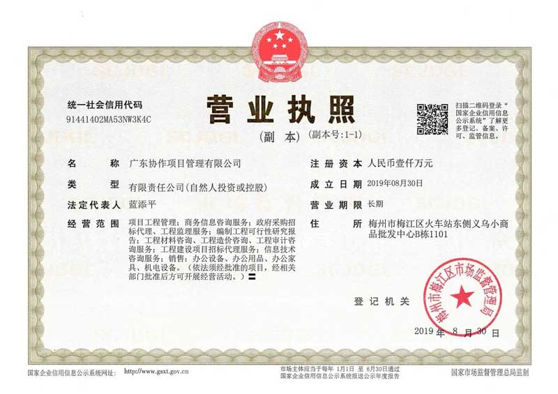 廣東協(xié)作項(xiàng)目管理有限公司是經(jīng)梅州市工商行政管理局批準(zhǔn)登記注冊(cè),具有政府采購(gòu)招標(biāo)代理資質(zhì)的、專(zhuān)業(yè)為機(jī)關(guān)、事業(yè)單位、社會(huì)團(tuán)體提供貨物、服務(wù)、工程的招標(biāo)代理服務(wù)。目前,已成為廣東省招標(biāo)代理行業(yè)較具實(shí)力的招標(biāo)代理及咨詢(xún)的專(zhuān)業(yè)化公司。經(jīng)廣東省財(cái)政廳政府采購(gòu)監(jiān)管處審批,目前在廣東省轄區(qū)內(nèi)開(kāi)展招標(biāo)代理業(yè)務(wù)。